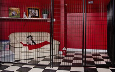 We also use a double-enclosure system when you bring or pick up your dogs. This is similar to visiting a dog park, where there is a double gate for entering and exiting. For these reasons, please do not enter the kennel areas, but instead wait by your car or inside the office. We have a buzzer in the office for you to alert staff that you are here. Please don't hesitate to use it.